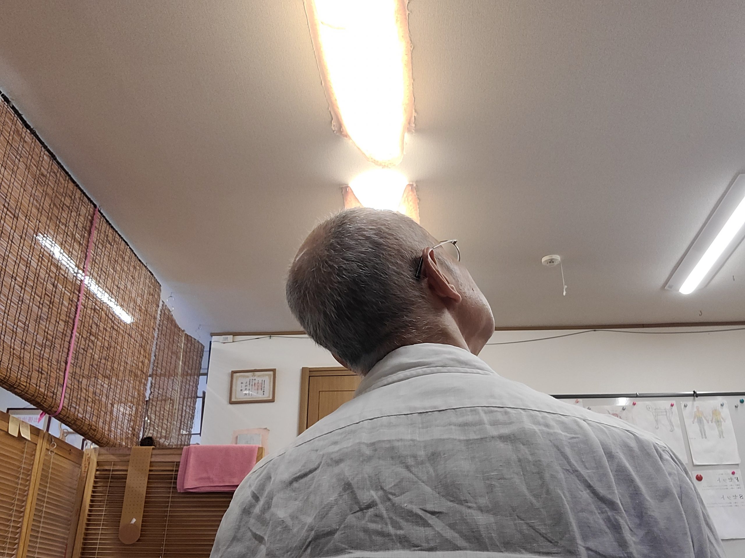左右の斜め上を見ると左肩から左の背中に痛みが走るそうです。